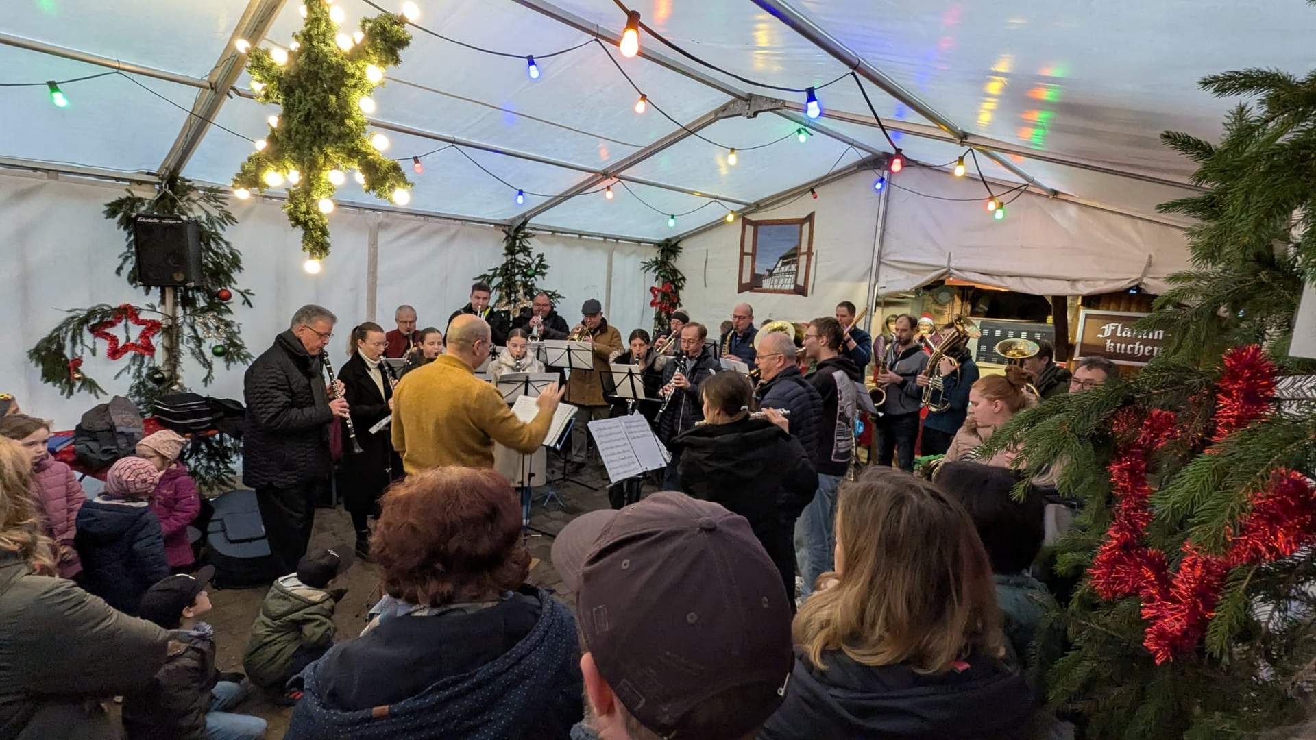 Am 07.12.2025 spielten wir auf dem Hauenebersteiner Weihnachtsmarkt. Zusammen mit der Bläserklasse haben wir die Besucherinnen und Besucher mit festlicher Musik unterhalten.